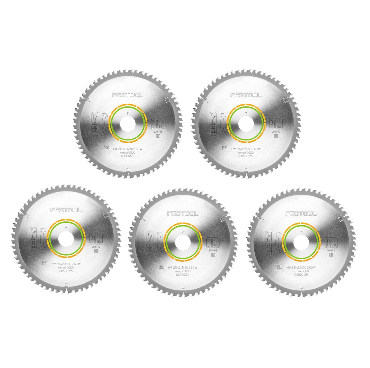 Festool 5x piła tarczowa z drobnymi zębami HW 216 x 2,3 x 30 mm W60 216 mm 60 zębów ( 5x 500125 )