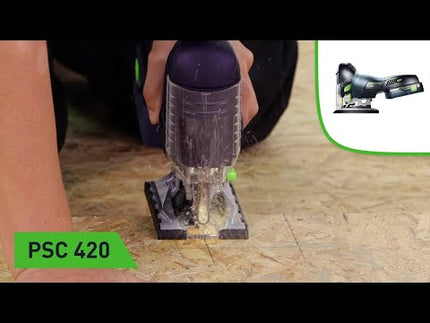 Akumulatorowa wyrzynarka wahadłowa Festool PSC 420 jest idealna do szerokiego zakresu zastosowań, np. do wycinania otworów pod zlewozmywaki, płyty grzewcze, kuchnie i prace wykończeniowe.Na przykład do wycinania otworów pod zlewozmywaki i płyty grzewcze, montażu mebli, kuchni i wykańczania wnętrz. Urządzenie doskonale nadaje się również do wycinania okręgów i łuków, nacinania listew końcowych, przycinania elementów na długość, cięcia belek i cięć od dołu. PSC 420 imponuje doskonałym zachowaniem na zakrętach dzięki potrójnemu prowadzeniu brzeszczotu i sztywnej skrętnie belce podnoszącej. Mocny silnik EC-TEC zapewnia dużą siłę uciągu i szybki postęp cięcia. Ergonomiczna konstrukcja, bardzo niska waga 2,4 kg i bardzo wygodny, miękki uchwyt sprawiają, że obsługa jest bardzo łatwa i wygodna. Włącznik/wyłącznik po obu stronach jest łatwo dostępny w każdej pozycji uchwytu, a system szybkiej wymiany FastFix umożliwia szybką i łatwą wymianę stołów, podeszew jezdnych i brzeszczotów bez użycia narzędzi. Dzięki zintegrowanemu oświetleniu stroboskopowemu i wydajnemu systemowi odsysania wyrzynarka wahadłowa Festool gwarantuje zawsze dobrą widoczność, umożliwiającą np. precyzyjne rozpoznanie cięcia. PSC 420 jest dostarczana w nowej walizce SYS3 M 187 z pasującą wkładką, która została wyposażona w dodatkowy uchwyt boczny, dzięki czemu idealnie nadaje się do transportu z pojazdu na plac budowy.