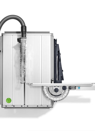 Pilarka stołowa CS 50 EBG PRECISIO Festool to prawdziwie wszechstronne urządzenie do wykańczania wnętrz, produkcji mebli i budowy stoisk targowych. Doskonale sprawdza się przy cięciach poprzecznych o szerokości do 300 mm i wzdłużnych o wysokości cięcia do 52 mm. Dzięki odchylanemu brzeszczotowi możliwe są cięcia pod kątem od -2° do +45°. Ruchoma osłona przeciwodpryskowa umożliwia wykonywanie cięć po obu stronach bez ryzyka rozdarcia. Niewielka waga i inteligentne funkcje sprawiają, że pilarka jest cudem montażu. Pilarka PRECISIO posiada wielofunkcyjny uchwyt z elementami sterującymi do włączania i wyłączania, regulacji prędkości, krótkiej pracy, szybkiego zatrzymania i mechanizmu ciągnięcia. Uchwyt jest ergonomicznie zaprojektowany, dzięki czemu długotrwała praca jest przyjazna dla użytkownika i nie obciąża stawów. Szybka zmiana z cięcia wzdłużnego na poprzeczne nie stanowi problemu dzięki ogranicznikowi kątowemu. System połączeń CLEANTEC zapewnia bezpieczne mocowanie węża ssącego i jest kompatybilny ze wszystkimi odkurzaczami mobilnymi Festool Sandard, zapewniając bezpyłową pracę. Zaawansowany system MMC (Multi-Material-Control) Electronic gwarantuje bezpieczną i dopasowaną do materiału pracę dzięki regulowanej i stałej prędkości obrotowej oraz kontroli temperatury. Rowek w stole pilarki zapewnia pewne mocowanie obrabianych elementów, zapobiegając ich ześlizgiwaniu się. Funkcja FastFix umożliwia szybką i łatwą wymianę brzeszczotu. Szybki hamulec zapewnia bezpieczną pracę podczas strugania, piłowania i frezowania. System mocowania oferuje zwiększoną szerokość i długość do obróbki dużych elementów. PRECISIO jest mobilna i elastyczna dzięki rolkom transportowym z zabezpieczeniem przed załamaniem. Brzeszczoty i osłony przeciwodpryskowe są zawsze pod ręką w zintegrowanym garażu na akcesoria.