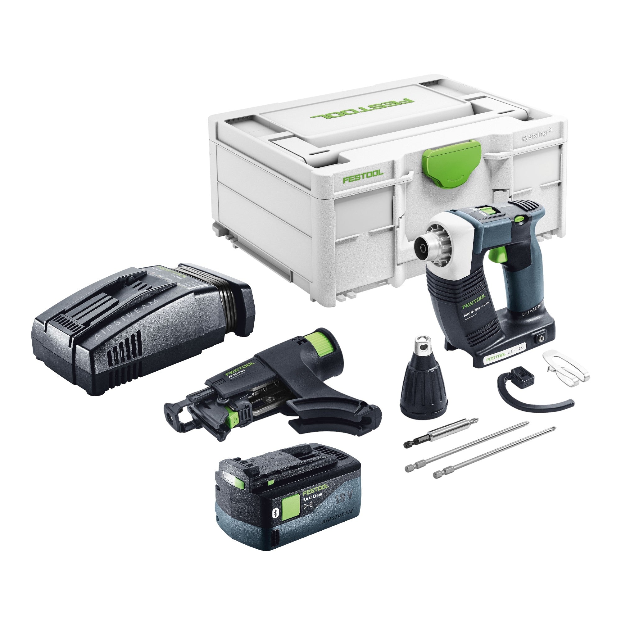 Akumulatorowa wkrętarka budowlana Festool DWC 18-2500 Basic z magazynkiem jest szczególnie przydatna do wkręcania w suchej zabudowie. Dzięki optymalnemu momentowi obrotowemu możliwe jest wykonywanie nawet wymagających połączeń śrubowych o średnicy do 5 mm, niezależnie od tego, czy podłoże jest wykonane z metalu czy drewna. Akumulatorowa wkrętarka budowlana jest napędzana bezszczotkowym silnikiem EC-TEC, który charakteryzuje się długą żywotnością i bardzo wysoką wydajnością. Elektroniczny wyłącznik jest nie tylko wyjątkowo precyzyjny, umożliwiając dokładne ustawienie głębokości wkręcania, ale także nie ulega zużyciu, dzięki czemu jest bardzo trwały. W razie potrzeby magazynek DWC 18-2500 można wyjąć w zaledwie kilka sekund bez użycia narzędzia, co oznacza, że akumulatorowa wkrętarka budowlana jest gotowa do każdego zadania w zaledwie kilka sekund.