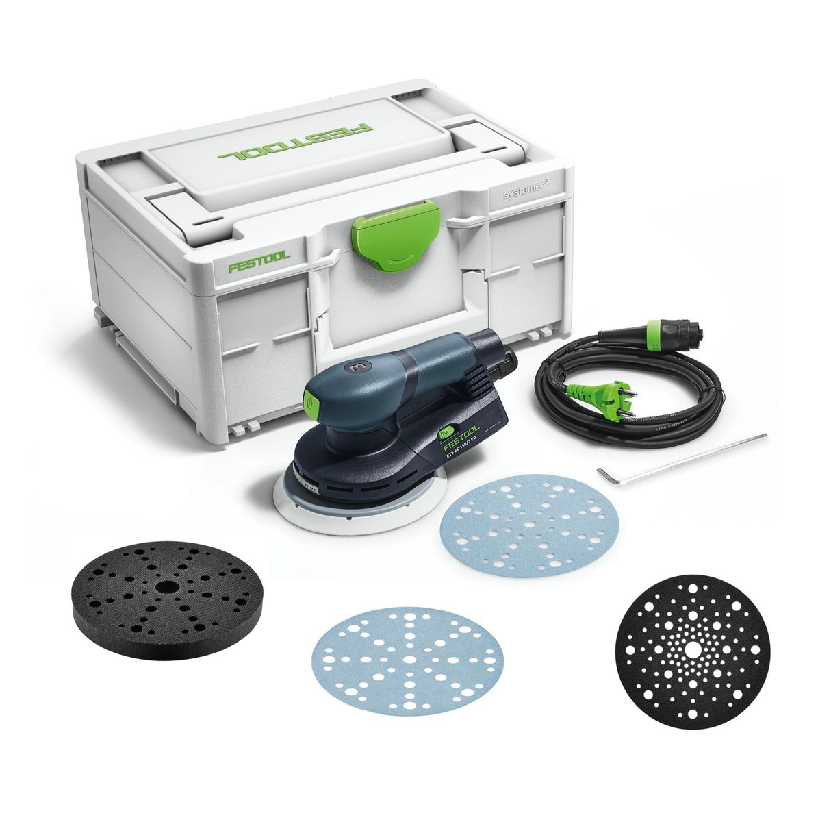 Festool ETS EC150/3 EQ-Plus szlifierka mimośrodowa 400 W 150 mm bezszczotkowa + 250 tarcz szlifierskich + 2x talerz ochronny + talerz pośredni + systainer