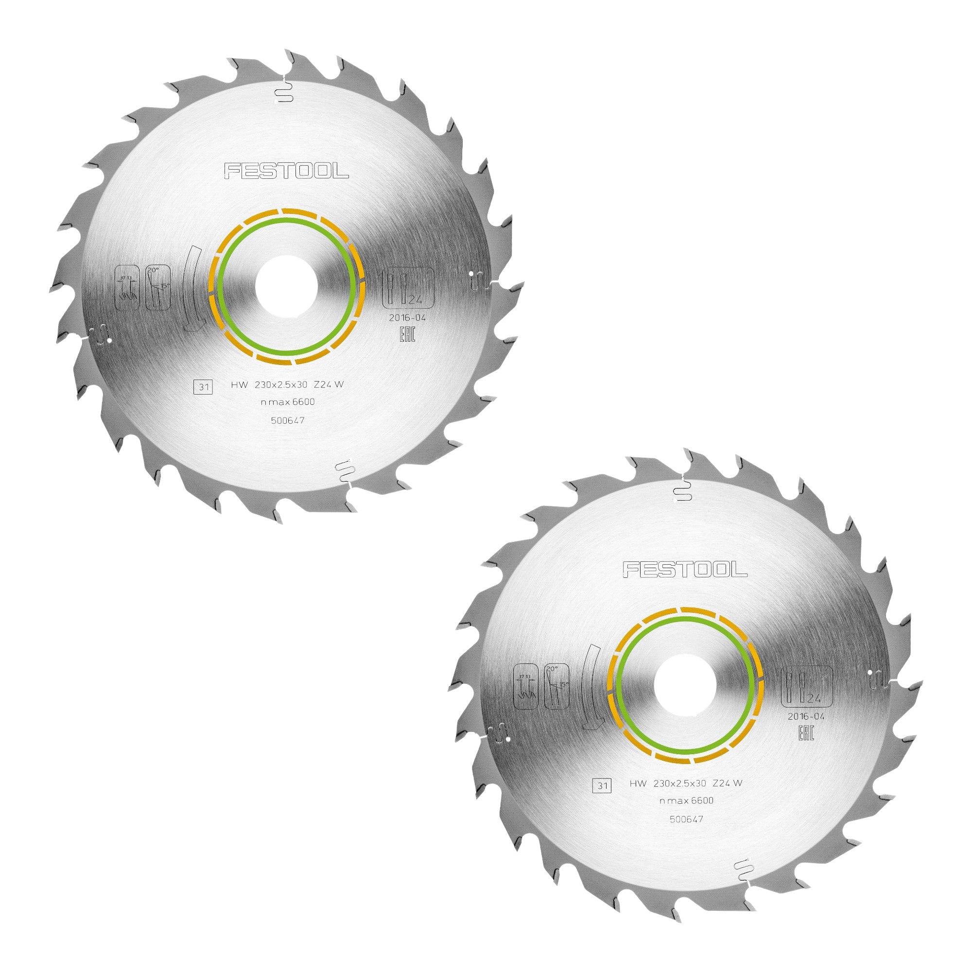 Festool HW 230x2,5x30 W24 Piła tarczowa WOOD STANDARD 2 szt. ( 2x 500647 ) 230 x 2,5 x 30 mm 24 zęby do wszystkich materiałów drewnopochodnych, płyt budowlanych, miękkich tworzyw sztucznych, cięcie zgrubne