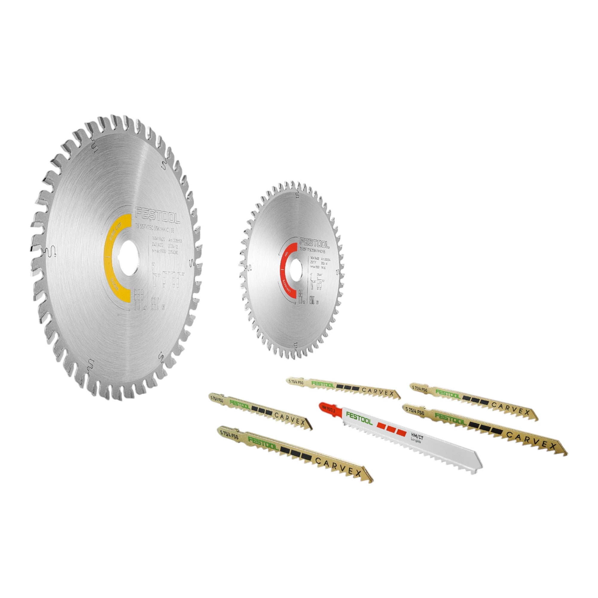 Zestaw do obróbki drewna Festool w praktycznym opakowaniu oferuje idealne rozwiązanie do wydajnej obróbki drewna w zakresie stolarstwa, układania podłóg i budownictwa drewnianego. Dzięki przemyślanemu połączeniu dwóch wysokiej jakości brzeszczotów tarczowych i sześciu precyzyjnych brzeszczotów do wyrzynarki, zestaw ten obejmuje prawie wszystkie typowe zastosowania do drewna, laminatu i płyt klejonych żywicą melaminową. Zestaw zawiera tarczę pilarską WOOD FINE CUT, która została specjalnie opracowana do precyzyjnych cięć w płytach fornirowanych i powlekanych, przekrojach z litego drewna i MDF oraz tarczę pilarską LAMINATE/HPL, która jest idealna do laminatów, płyt powlekanych, szkła akrylowego, płyt z żywicy melaminowej i materiałów o litej powierzchni. W zestawie znajduje się również brzeszczot do wyrzynarki WOOD UNIVERSAL, który może być używany do wszystkich odpowiednich prac związanych z drewnem, oraz brzeszczot do wyrzynarki PLASTICS LAMINATE, który został specjalnie zaprojektowany do laminatów i płyt klejonych żywicą melaminową. Dzięki praktycznemu oznaczeniu kolorystycznemu Festool można szybko i łatwo znaleźć odpowiedni brzeszczot, oszczędzając cenny czas i pozwalając w pełni skoncentrować się na pracy. Pakiet Value Pack to ekonomiczny sposób na rozszerzenie asortymentu narzędzi, a jednocześnie zapewnia wszechstronny wybór brzeszczotów do precyzyjnych, czystych cięć. Niezależnie od tego, czy pracujesz z drewnem, laminatem czy innymi materiałami panelowymi, ten zestaw brzeszczotów zapewnia płynną pracę i doskonałe rezultaty.