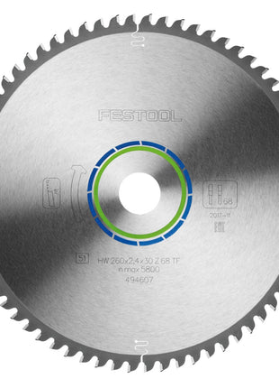 Festool specjalna tarcza pilarska TF68 aluminium tworzywo sztuczne 260 x 2,4 x 30 mm ( 494607 ) 260 mm 68 zębów do KS 88 120