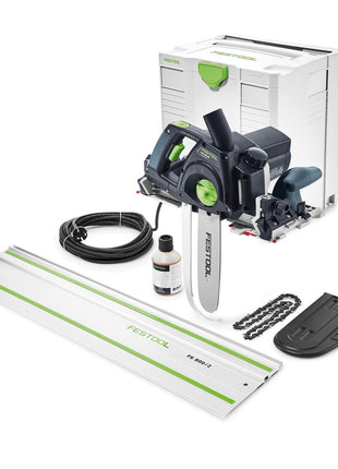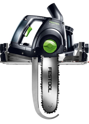 Pilarka mieczowa SSU 200 EB-Plus FS UNIVERS jest innowacyjnym, wszechstronnym urządzeniem Festool. Niezależnie od tego, czy jest to drewno, czy materiały izolacyjne, piła tarczowa UNIVERS SSU 200 tnie wszystkie popularne materiały w budownictwie drewnianym o grubości do 200 mm. Dzięki szynie prowadzącej można z łatwością wykonywać cięcia proste, poprzeczne bez wyrwań, wzdłużne, ukośne, ukośne i poprzeczne. Pilarka mieczowa waży zaledwie 6,5 kg i jest całkowicie schowana w SYSTAINER SYS 5 T - LOC , co ułatwia jej użytkowanie na placach budowy lub podczas prac montażowych. Dzięki zakresowi obrotu wynoszącemu 60°, SSU 200 nadaje się nawet do ekstremalnych cięć ukośnych. Zintegrowany rowek prowadzący w odlewanym ciśnieniowo aluminiowym stole w połączeniu z szyną prowadzącą umożliwia wykonywanie precyzyjnych cięć, co jest dokładnie tym, czego potrzeba w budownictwie drewnianym. Okno podglądu w pokrywie ochronnej pozwala przez cały czas obserwować znacznik i cięcie, zapewniając najlepszą możliwą kontrolę. Głębokość cięcia przy 45° wynosi 140 mm, a przy 60° 100 mm. Funkcja FastFix umożliwia beznarzędziową wymianę łańcucha w kilku prostych krokach, nawet napinanie łańcucha na urządzeniu odbywa się beznarzędziowo poprzez obrócenie koła napinającego. Elektroniczny system MMC, który dostosowuje regulację prędkości do materiału, zapewnia możliwość pracy z odpowiednim materiałem. Zabezpieczenie przed przeciążeniem i hamulec bezpieczeństwa chronią maszynę i zapewniają wysoki poziom bezpieczeństwa. Dzięki kontroli poziomu oleju zawsze wiadomo, kiedy należy uzupełnić smar łańcuchowy. Na uchwycie znajduje się pokrętło, za pomocą którego można ustawić optymalne smarowanie łańcucha, a także wyłączyć go na czas przerwy. Szczęki prowadzące, które można zamontować bez użycia narzędzi, zapewniają brak luzów podczas prowadzenia piły, co przekłada się na precyzyjne cięcia najwyższej jakości. System mocowania FS - Rapid utrzymuje szynę prowadzącą tam, gdzie jej miejsce - przy rzazie. Ogranicznik prądu rozruchowego umożliwia bezproblemowe uruchomienie maszyny w przypadku awarii domowych bezpieczników. Zdrowe środowisko pracy jest zapewnione dzięki podłączeniu ruchomych odciągów.Dysza odciągowa może być obracana o 360°, dzięki czemu nie stanowi przeszkody podczas pracy.Danetechniczne: