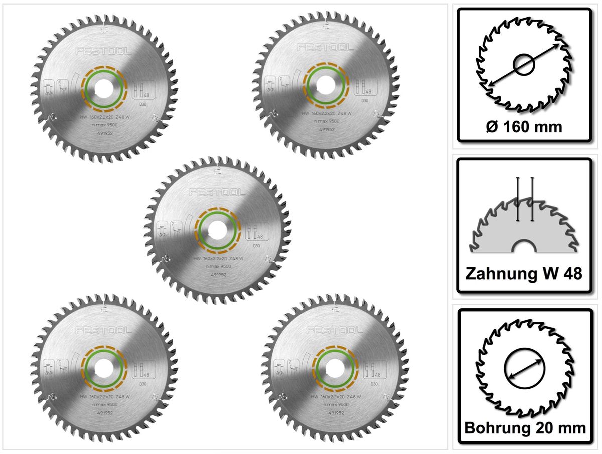 Festool tarcza pilarska z drobnymi zębami HW 160 x 20 x 2,2 mm W48 160 mm 48 zębów ( 5 x 491952 )