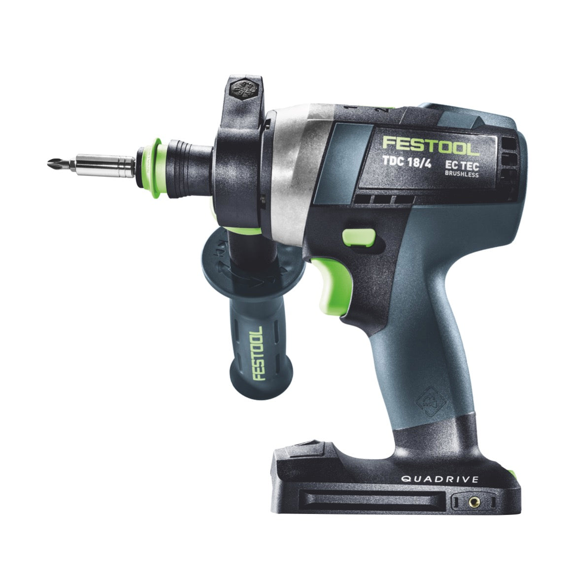 TDC 18/4 to wydajna akumulatorowa wiertarko-wkrętarka Festool spełniająca najwyższe wymagania. Połączenie poręcznej konstrukcji i ogromnej mocy umożliwia wygodną i efektywną pracę. Dzięki 4 różnym biegom wiertarko-wkrętarkę można zoptymalizować do wszystkich zastosowań. Oznacza to, że wkręcanie z momentem obrotowym 50 Nm jest tak samo możliwe na 1. biegu, jak wiercenie na 4. biegu z prędkością 3600 obr. Bezszczotkowy silnik EC-TEC łączy w sobie ogromną odporność i wytrzymałość z niskim zużyciem, a tym samym długą żywotnością. Dzięki interfejsowi FastFix osprzęt można wymieniać szybko i bez użycia narzędzi. Funkcja KickbackStop minimalizuje ryzyko poważnych obrażeń w przypadku zakleszczenia się wiertarko-wkrętarki poprzez zatrzymanie silnika, chroniąc w ten sposób zdrowie użytkownika. Festool to producent elektronarzędzi klasy premium, który charakteryzuje się przede wszystkim wieloletnią tradycją i bardzo wysoką jakością wykonania.