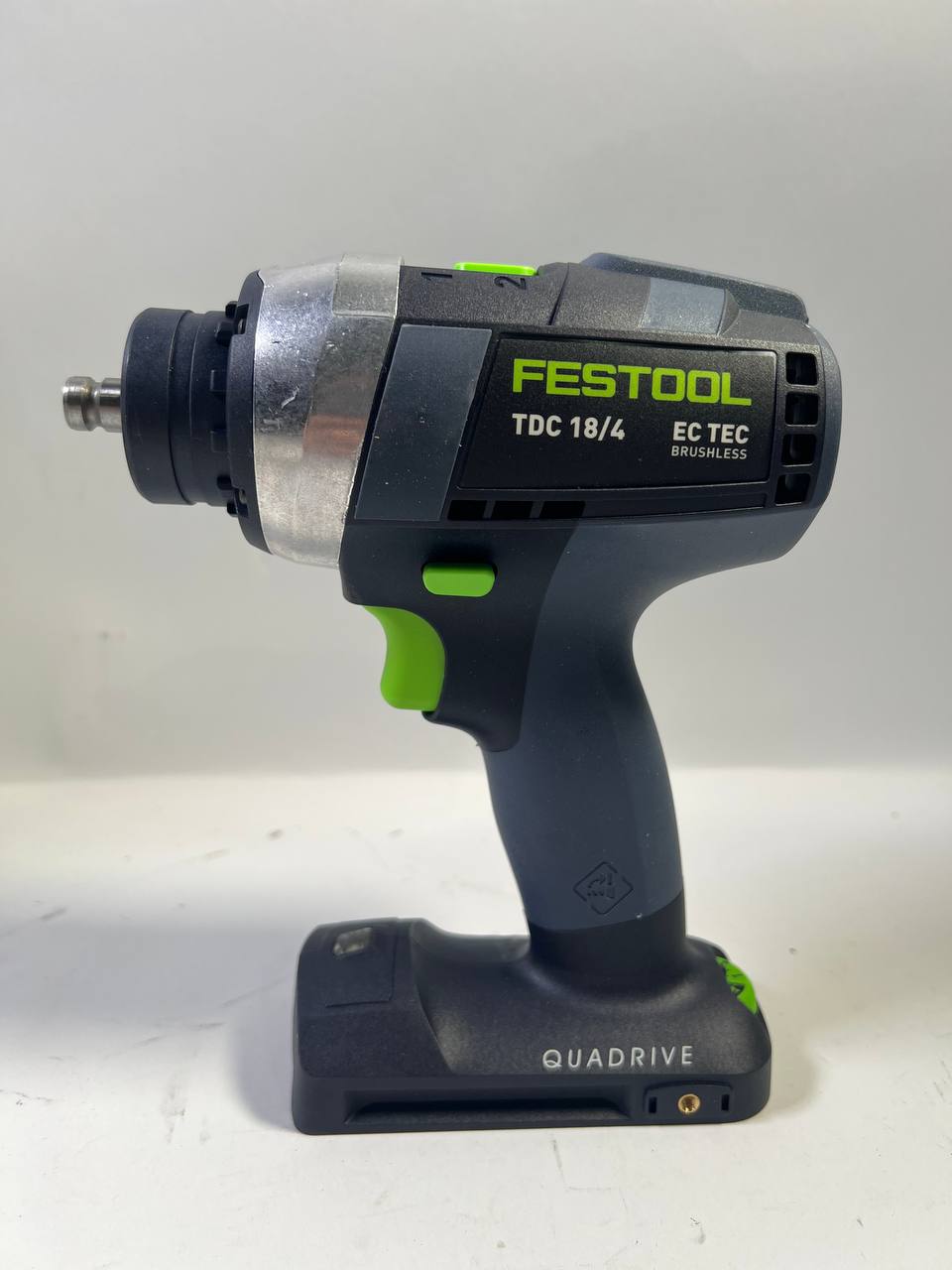 TDC 18/4 to wydajna akumulatorowa wiertarko-wkrętarka Festool spełniająca najwyższe wymagania. Połączenie poręcznej konstrukcji i ogromnej mocy umożliwia wygodną i efektywną pracę. Dzięki 4 różnym biegom wiertarko-wkrętarkę można zoptymalizować do wszystkich zastosowań. Oznacza to, że wkręcanie z momentem obrotowym 50 Nm jest tak samo możliwe na 1. biegu, jak wiercenie na 4. biegu z prędkością 3600 obr. Bezszczotkowy silnik EC-TEC łączy w sobie ogromną odporność i wytrzymałość z niskim zużyciem, a tym samym długą żywotnością. Dzięki interfejsowi FastFix osprzęt można wymieniać szybko i bez użycia narzędzi. Funkcja KickbackStop minimalizuje ryzyko poważnych obrażeń w przypadku zakleszczenia się wiertarko-wkrętarki poprzez zatrzymanie silnika, chroniąc w ten sposób zdrowie użytkownika. Festool to producent elektronarzędzi klasy premium, który charakteryzuje się przede wszystkim wieloletnią tradycją i bardzo wysoką jakością wykonania.
