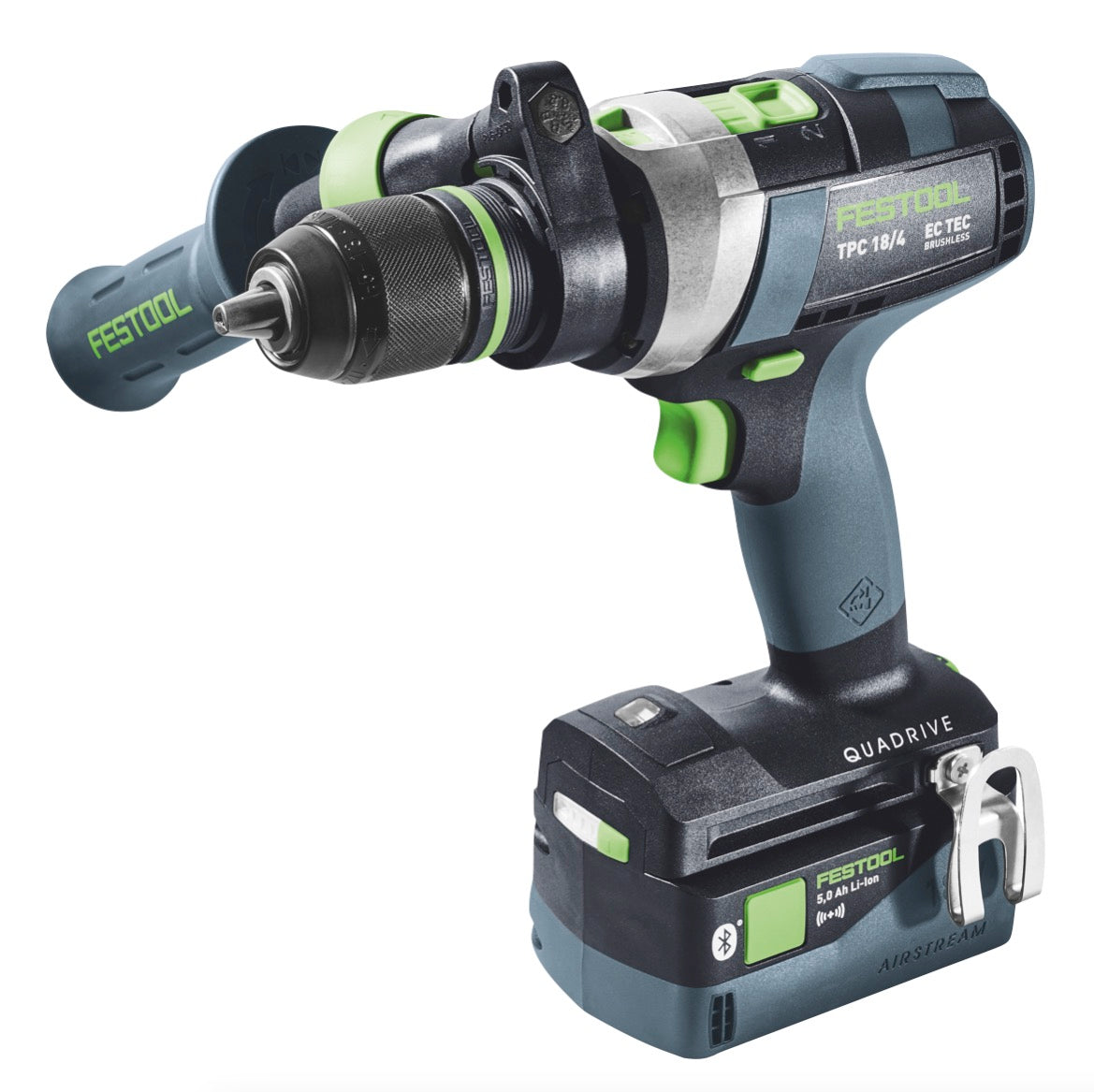 Die Firma Festool bietet hier mit dem TPC 18/4 einen kraftvollen Akku Schlagbohrschrauber mit für allerhöchste Ansprüche. Die Kombination aus handlicher Bauform und enormer Leistungsstärke ermöglicht ein komfortables und effektives arbeiten. Durch die 4 unterschiedlichen Gänge lässt sich der Bohrschrauber für alle Anwendungen optimal einstellen. Somit ist im 1. Gang ein Schrauben mit 50 Nm genauso möglich wie ein Bohren im 4. Gang mit 3600 U/min. Der bürstenlose EC-TEC Motor kombiniert enorme Belastbarkeit und Ausdauer mit einem niedrigen Verschleiß und dadurch langen Lebensdauer. Durch die FastFix Schnittstelle lassen sich die Aufsätze schnell und werkzeuglos wechseln. Die KickbackStop Funktion minimiert das Risiko schwerer Verletzungen beim Blockieren des Bohrschraubers indem es den Motor stoppt und schützt damit die Gesundheit des Anwenders. Festool ist ein Premiumhersteller für Elektrowerkzeuge, der sich vor allem durch seine lange Tradition und seine sehr hohe Verarbeitungsqualität auszeichnet.