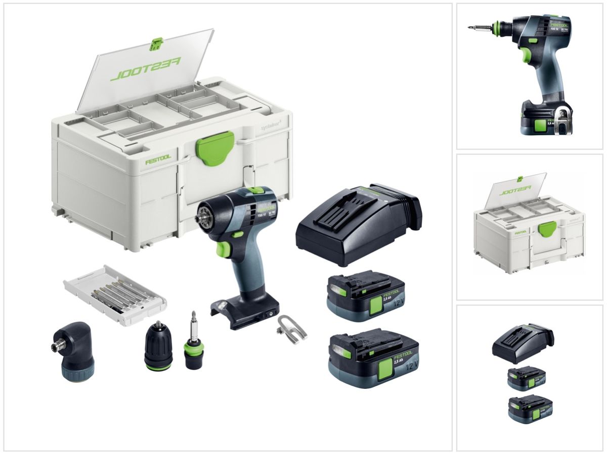 Festool TXS 12 2,5-Set akumulatorowa wiertarko-wkrętarka 12 V 30 Nm bezszczotkowa ( 576874 ) + 2x akumulator 2,5 Ah + ładowarka + zestaw bitów + systainer