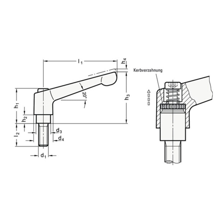 - Regulowana dźwignia zaciskowa GN 300 d1 M 12 mm