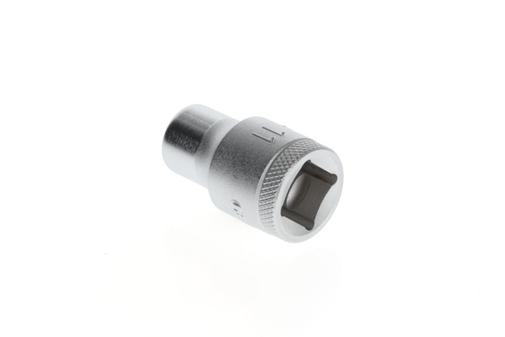 Napęd kwadratowy 12,5 mm (1/2″) - sześciokąt - stal wanadowa - chromowany - radełkowany - z rowkiem na kulkę - DIN 3124 / ISO 2725-1 napęd kwadratowy wg DIN 3120-C 12,5 / ISO 1174