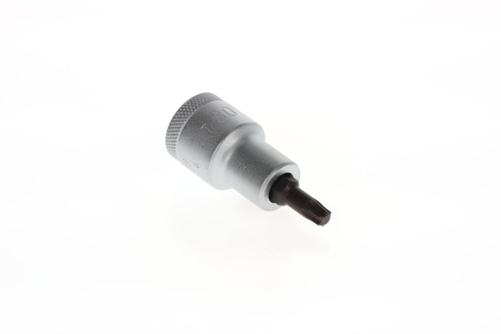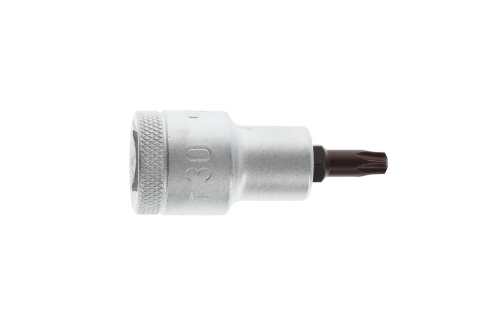 Napęd kwadratowy 12,5 mm (1/2″) - do wkrętów z wewnętrznym profilem TORX® - wkładka ze stali wanadowej - ostrze ze specjalnej stali czernionej - radełkowana z rowkiem na kulkę - DIN 3120 / ISO 1174