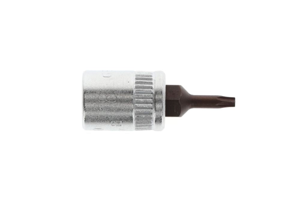 Napęd kwadratowy 6,3 mm (1/4″) - do śrub z wewnętrznym profilem TORX® - stal wanadowa - chromowana - końcówka ze specjalnej stali, czerniona - radełkowana - DIN 3120 / ISO 1174