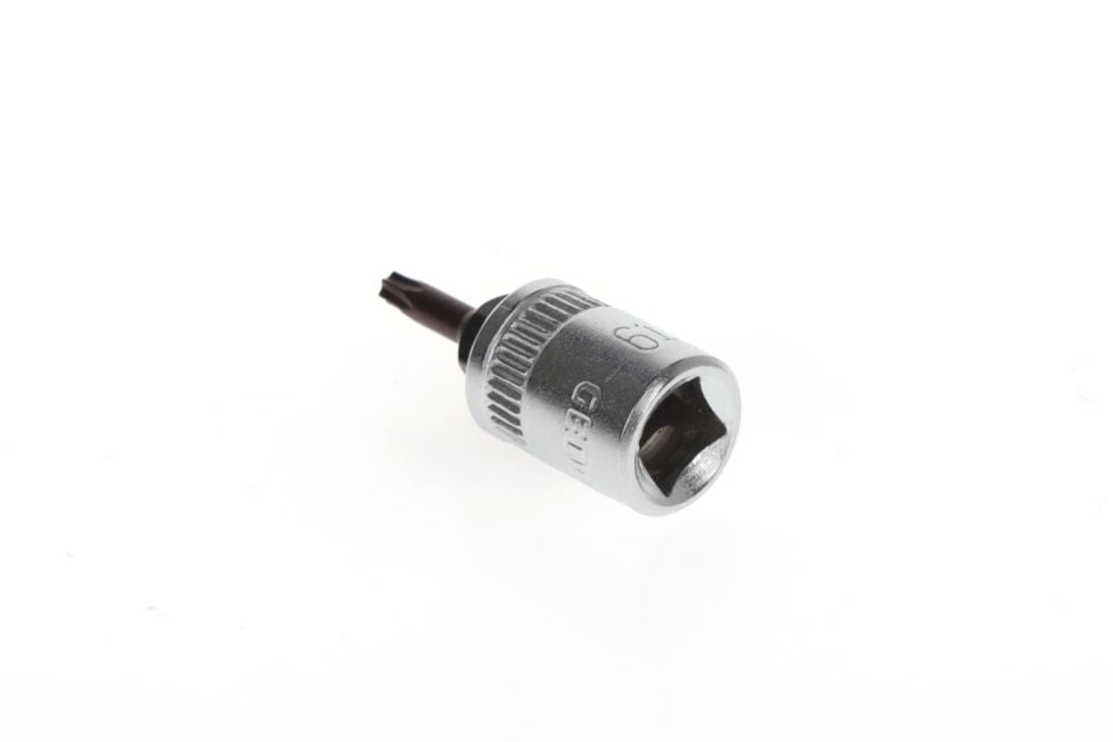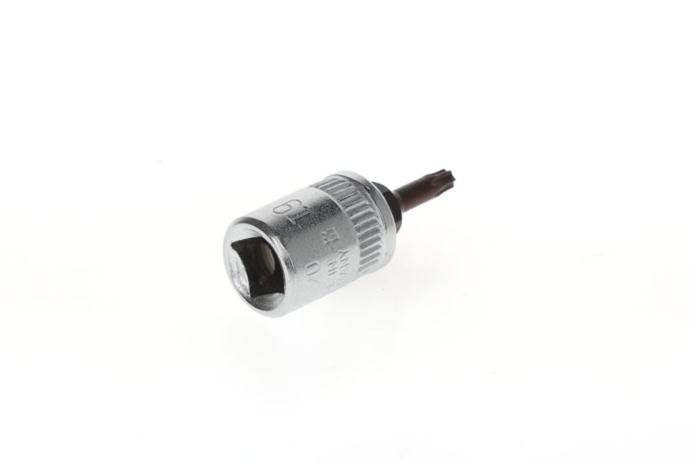 Napęd kwadratowy 6,3 mm (1/4″) - do śrub z wewnętrznym profilem TORX® - stal wanadowa - chromowana - końcówka ze specjalnej stali, czerniona - radełkowana - DIN 3120 / ISO 1174