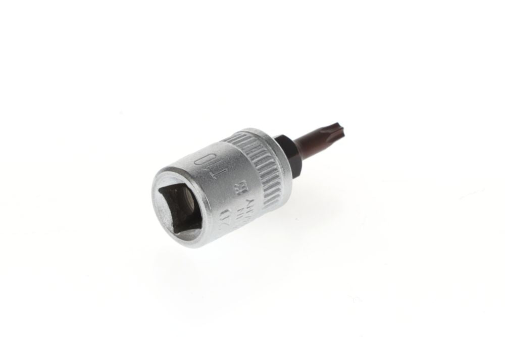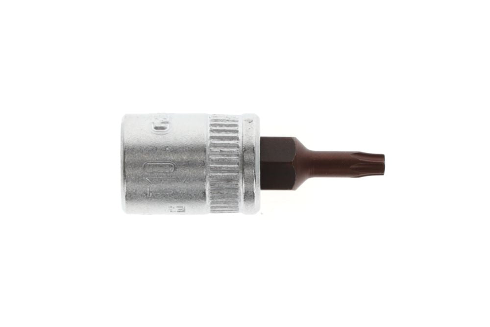 Napęd kwadratowy 6,3 mm (1/4″) - do śrub z wewnętrznym profilem TORX® - stal wanadowa - chromowana - końcówka ze specjalnej stali, czerniona - radełkowana - DIN 3120 / ISO 1174