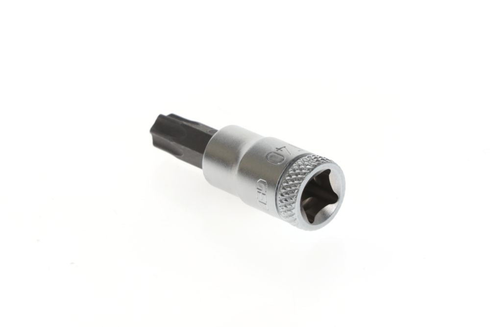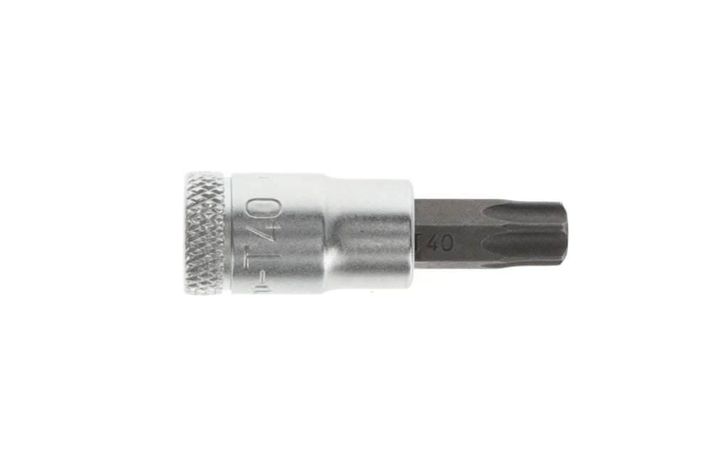 Napęd kwadratowy 6,3 mm (1/4″) - do śrub z wewnętrznym profilem TORX® - stal wanadowa - chromowana - końcówka ze specjalnej stali, czerniona - radełkowana - DIN 3120 / ISO 1174