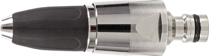 Stecksystem · schwere Ausführung · mit Gummierung für leichte Handhabung und angenehmer Haptik · Wasserdurchfluss stufenlos regulierbar (Vollstrahl bis Sprühnebel) · Messing verchromt