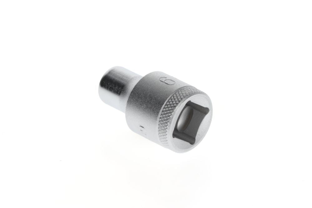 Napęd kwadratowy 12,5 mm (1/2″) - sześciokąt - stal wanadowa - chromowany - radełkowany - z rowkiem na kulkę - DIN 3124 / ISO 2725-1 napęd kwadratowy wg DIN 3120-C 12,5 / ISO 1174