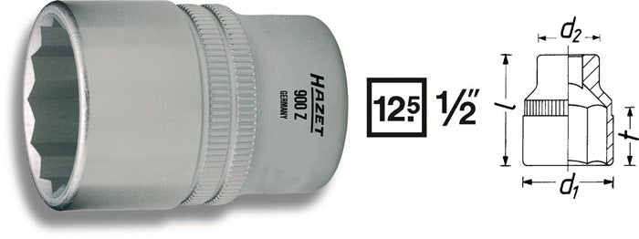 Gniazdo Hazet 900Z ( 8000466655 ) 1/2 ″ 12-punktowe długość 38 mm