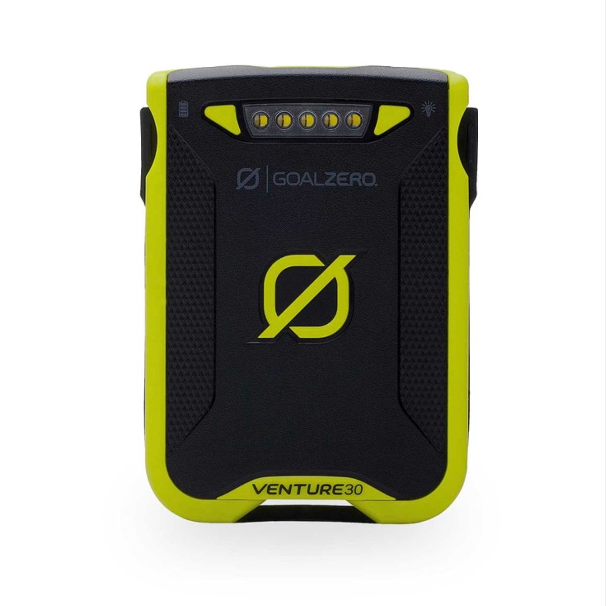 Die Venture 30 Power Bank von Goal Zero ist der perfekte Begleiter für Outdoor Reisen. Die Lithium-Ionen Power Bank gewährleistet eine Zellkapazität von 29 Wattstunden bei einer Akkuspannung von 3,7 Volt und einer Nennkapazität von 7,8 Amperestunden. Die IP X6 Schutz zertifizierung garantiert Ihnen einen Schutz gegen Tropf-, Spritz- und Sprühwasser, was seine Langlebigkeit deutlich erhöht. Die integriete LED Ladestandsanzeige kann dank einer Strahlkraft von 65 Lumen auch als Taschenlampe genutzt werden. Dank der Gummiummantelung an den Außenkanten hält die Power Bank sogar fälle aus geringen höhen stand. Sie besitzt über zwei standard fünf Volt 2,4 Ampere ( max. 12 Watt ) USB Ausgänge, zum Laden Ihres Smartphones und einen fünf Volt 2,1 Ampere ( max. 10,5 Watt ) Micro-USB Eingang zum Laden der Power Bank. Aufladen können Sie die Power Bank einfach und bequem Zuhause über einen Netzstecker oder unterwegs mit den Goal Zero Solarmodulen ( nicht im Lieferumfang enthalten! ). Die Verstauung des Ladekabels wurde clever und effektiv in das Design der Power Bank integriert. Das interne Lade- und Entladeschutzsystem managet den Ladezyklus um die Zellen vor einer Beschädigung zu schützen. Das Unternehmen Goal Zero hat sich das Ziel gesetzt, eine intelligente, sichere und nachhaltige Zukunft mit tragbaren Stromversorgungslösungen für alle zu jederzeit zur verfügung zu stellen.