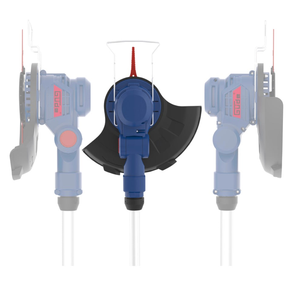 Der RT 18-201-05 von Güde ist ein leistungsstarker Akku Rasentrimmer aus der 18 V Akkusystem Gruppe für den Einsatz rund ums Haus und Garten. Durch den um 180° drehbaren und 5-fach neigbaren Trimmerkopf lassen sich auch Rasenkanten einfach und sauber schneiden. Die Kombination aus dem ausziehbaren ( teleskopierbar ) Führungsholm und dem stufenlos verstellbaren Zusatzhandgriff ermöglicht eine individuelle Anpassung. Die Ersatzmesser lassen sich platzsparend am Zusatzhandgriff verstauen. Güde ist ein führender Hersteller für Elektrowerkzeuge, eine lange Tradition und hohe Qualitätsstandards zeichnen das Unternehmen aus.