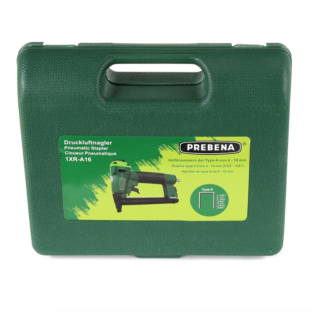 Gwoździarka pneumatyczna Prebena 1XR-A16 w walizce transportowej + A-BOX 9000 zszywek / Zszywki