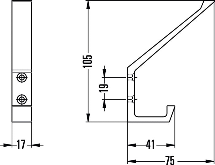 Pojedynczy hak - profil aluminiowy anodowany na kolor srebrny - 2 otwory montażowe