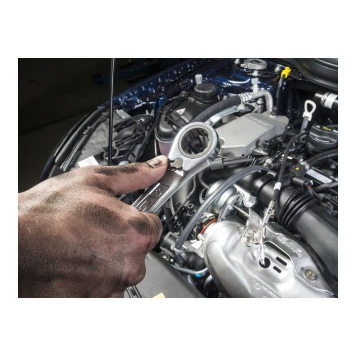 z przełącznikiem - stal CV - chromowana - szczęka nachylona pod kątem 15° - strona pierścieniowa nachylona pod kątem 13° - uzębienie drobne 72 zęby (SW 8 i 9, 60 zębów)