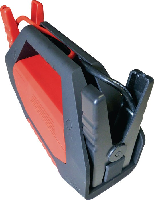rozruch silników wysokoprężnych i benzynowych o pojemności do 12 l - ze wskaźnikiem poziomu naładowania LED - przełączany 12/24 V, akumulator litowo-jonowy, wyjście USB 5 V/2 A do ładowania i obsługi urządzeń ze złączem USB - uchwyt na kable rozruchowe i zaciski - ładowanie za pomocą dołączonego zasilacza sieciowego 230 V lub przez gniazdo zapalniczki 12 V - z jedną diodą roboczą i ostrzegawczą - cykle ładowania 1000, czas ładowania 8 godzin, wskaźnik poziomu naładowania 4 diody LED