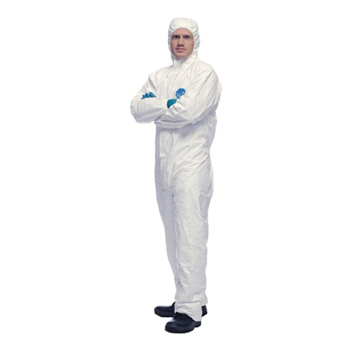 Materiał: Tyvek® 1431 N, 41 g/m² Kategoria III, typ 5B/6B Typ 6: EN 13034:2005 + A1 2009 Typ 5: EN ISO 13982-1:2004 + A1:2010 Bionorm: EN 14126:2003 Obustronna powłoka antystatyczna zgodna z normą EN 11126:2003 EN 1149-5:2008 ergonomiczna konstrukcja dla optymalnego dopasowania i swobody ruchów - większy suwak na zamku błyskawicznym - konstrukcja kaptura idealnie dopasowuje się do kształtu twarzy - rękawy nie podjeżdżają - z trzyczęściowym kapturem z elastycznym sznurkiem - elastyczne mankiety i zakończenia nogawek - zamek błyskawiczny Tyvek® z osłoną - elastyczna talia - wstawka w kroku (klin) dla optymalnego dopasowania - szwy zewnętrzne - obszar zastosowania: Bariera przed nieorganicznymi substancjami chemicznymi o niskim stężeniu i cząstkami >1µm - przemysł chemiczny i farmaceutyczny, rekultywacja skażonych terenów, czyszczenie przemysłowe, utylizacja odpadów, rolnictwo i inne zastosowania - Tyvek® 500 Xpert chroni pracowników przed niebezpiecznymi substancjami, a wrażliwe produkty i procesy przed skażeniem przez ludzi - Tyvek® 500 Xpert jest zwykle używany do ochrony przed cząstkami stałymi (typ 5) i mgłą ciekłą (typ 6) dostępny również od rozmiaru S i do rozmiaru 7XL. Dostępne rozmiary od S do 7XL