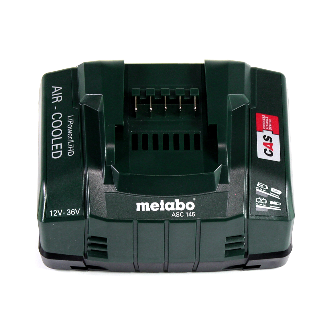- 1x akumulatorowa sprężarka Metabo :Power 160-5 18 LTX BL OF - 2x akumulator Metabo LiHD 5,5 Ah ( 625368000 ) system CAS - 1x ładowarka Metabo ASC 145 ( 627378000 ) - 1x :uniwersalne szybkozłącze