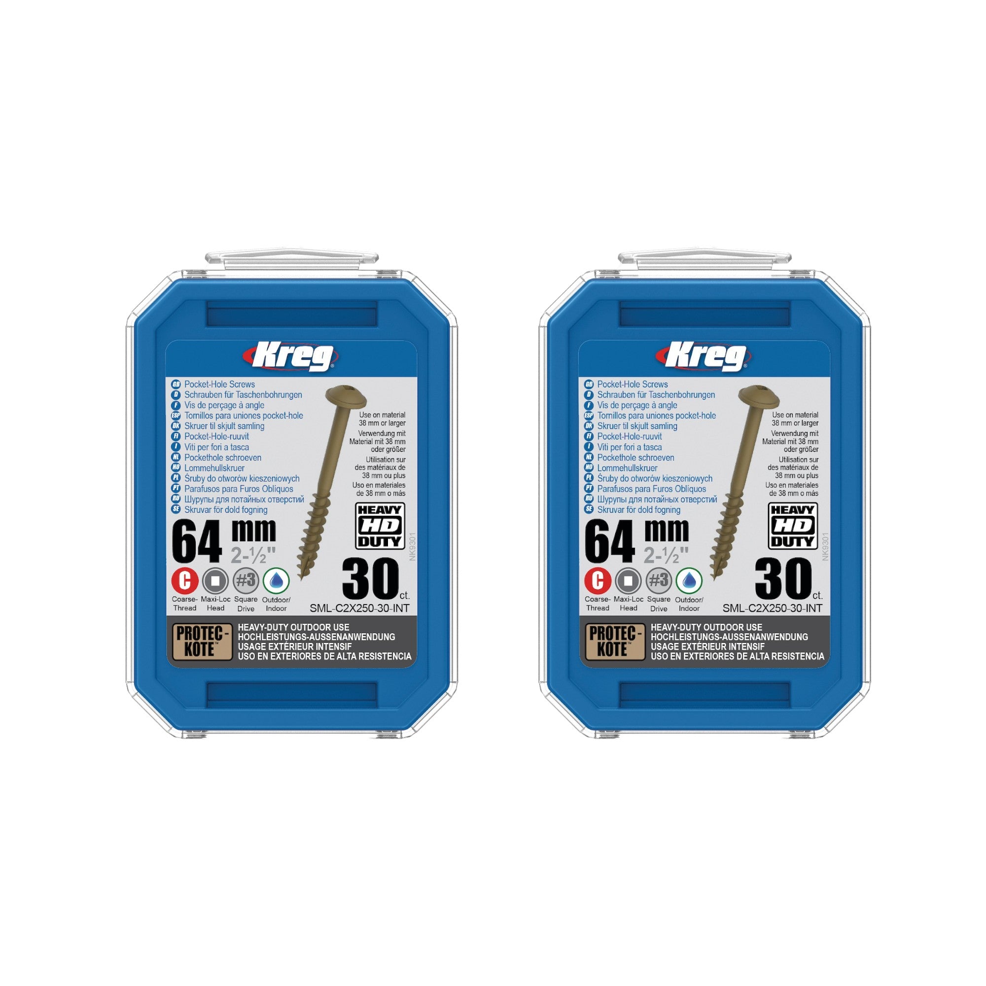 Kreg 2x HD Protec-Kote Maxi-Loc wkręty do otworów 64 mm (2x SML-C2X250-30-INT) gwint zgrubny 60 szt.
