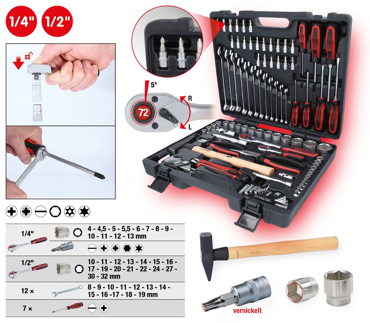 KS TOOLS 1/4"+1/2" Universal-Werkzeug-Satz, 97-tlg ( 917.0797 )