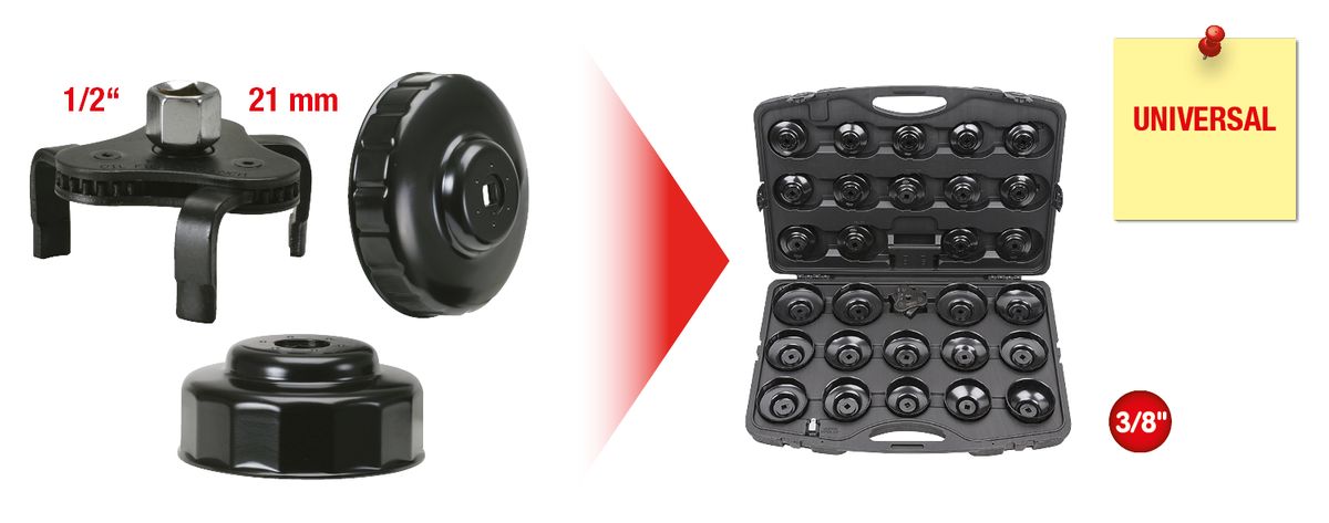 3/8" Ölfilterschlüssel-Satz, 30-tlg · Öldienstschlüssel-Satz für Ölfilter und Filtergehäusedeckel