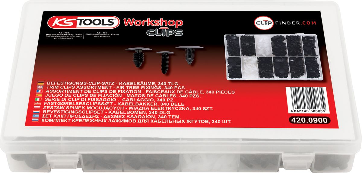 KS TOOLS Befestigungs-Clip-Satz für Kabelbäume, 340-tlg ( 420.0900 )