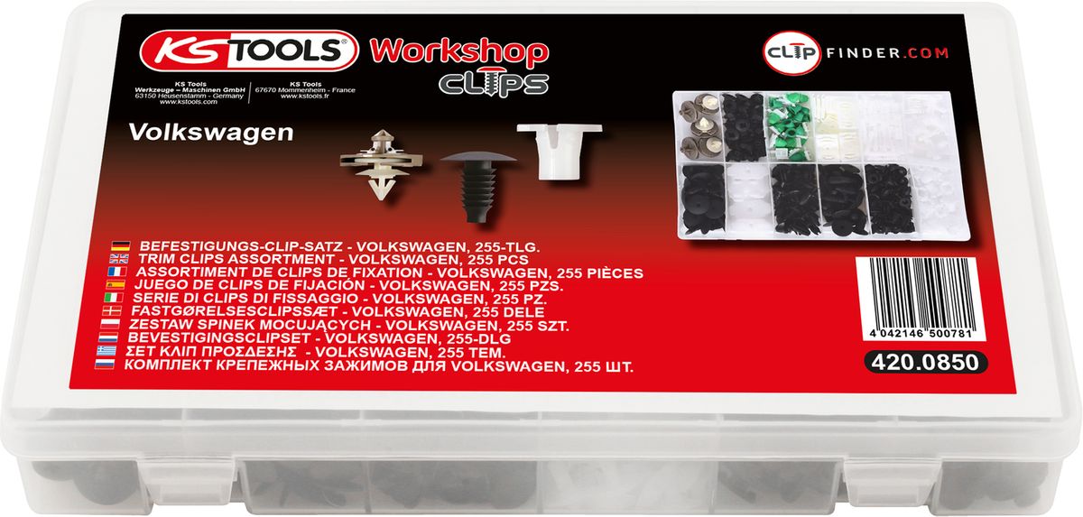 KS TOOLS Befestigungs-Clip-Satz für Volkswagen, 255-tlg ( 420.0850 )