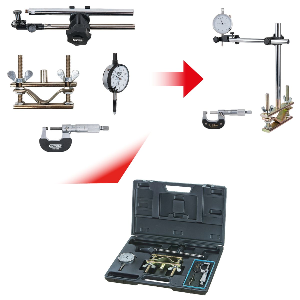 KS TOOLS Bremsscheiben-Messwerkzeug-Satz, 4-tlg ( 300.0690 )
