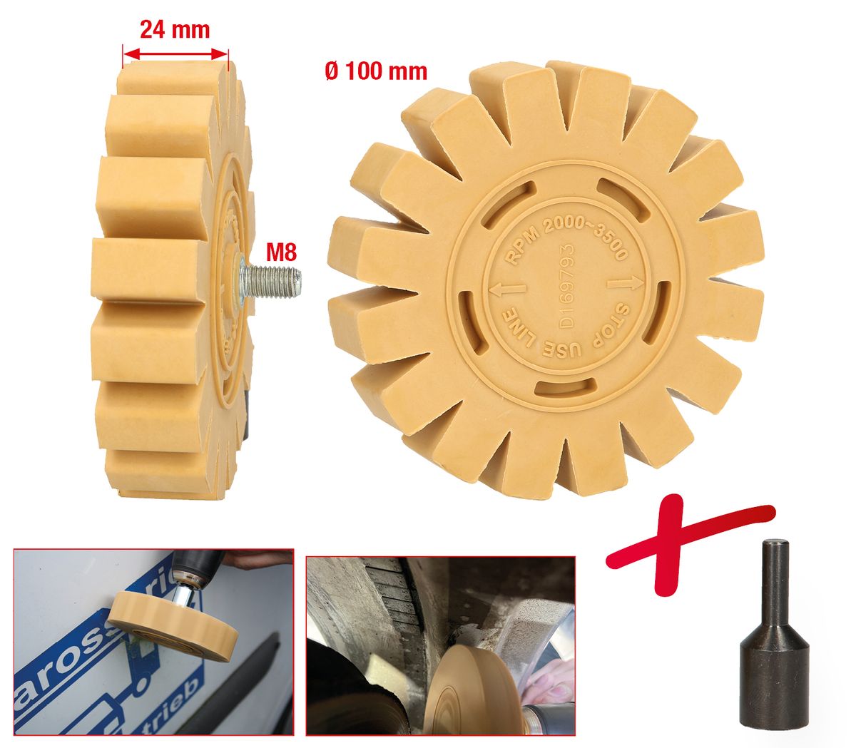 • die neutralfarbige Gummi-Radierscheibe verhindert ein Verschmieren auf der Oberfläche