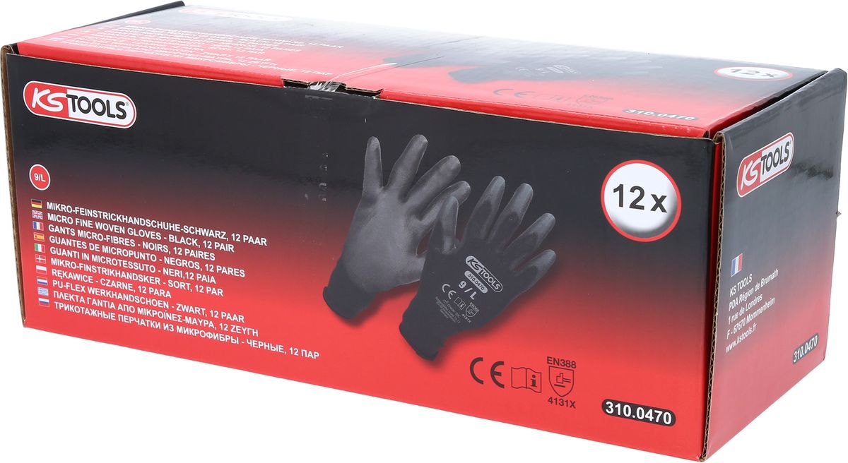 KS TOOLS Mikro-Feinstrickhandschuhe-schwarz, 9, 12 Paar ( 310.0470 )