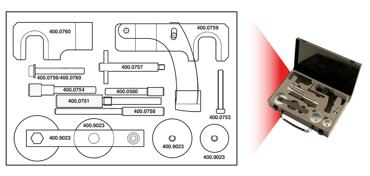 Motoreinstell-Werkzeug-Satz für Nissan / Opel / Renault, 15-tlg · Motoreinstell-Werkzeug-Satz für Nissan / Opel / Renault