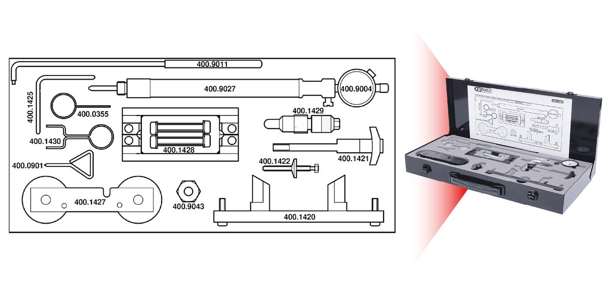 KS TOOLS Motoreinstell-Werkzeug-Satz für VAG, 23-tlg ( 400.2300 )