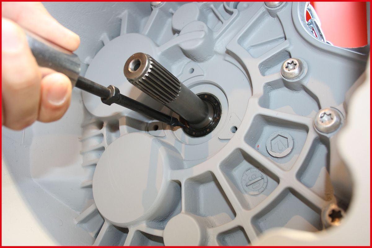 • mittels Schlaggewicht wird die Gewindespitze in den Simmerring geschlagen und mit der Hand eingedreht und mit dem Schlaggewicht ausgezogen