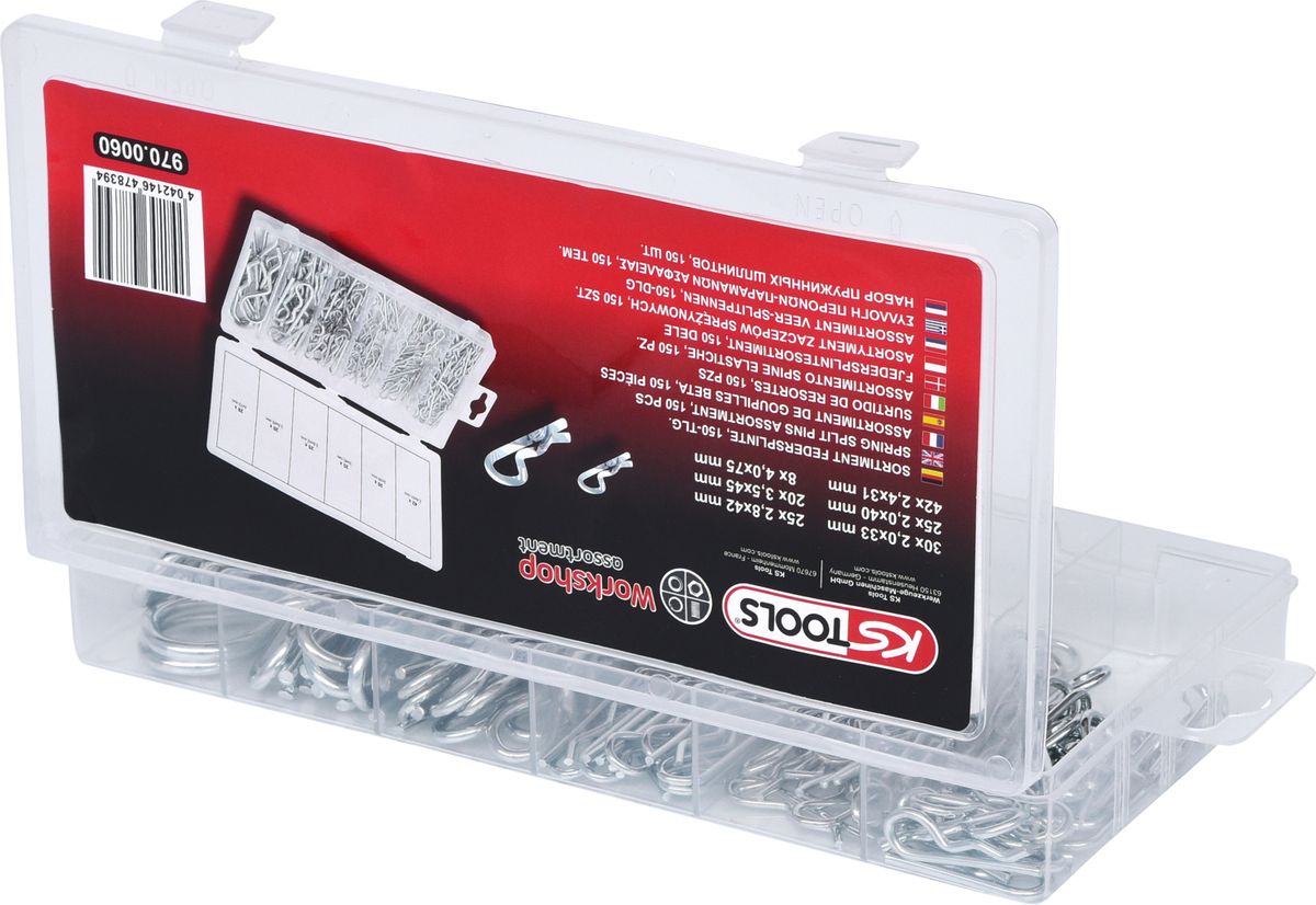KS TOOLS Sortiment Federsplinte, 1,8x33 - 3,9x75, 150-tlg ( 970.0060 )