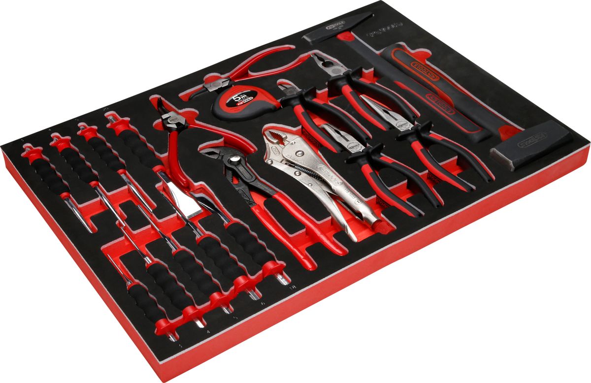 Zangen- / Hammer- / und Meißel-Satz in Schaumstoffeinlage, 22-tlg ·