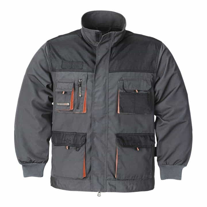 65% poliester / 35% bawełna - ok. 270 g/m² - w modnych kontrastowych kolorach - bardzo mocny i wytrzymały materiał zewnętrzny - odporne na ścieranie i bardzo wytrzymałe wstawki na ramionach i łokciach zapewniają trwałość w tych punktach naprężenia - pasek w talii i elastyczne mankiety zapewniają wygodne dopasowanie - klapa sztormowa nad zamkiem błyskawicznym zapewnia idealną ochronę przed wiatrem i warunkami atmosferycznymi - 5 przestronnych kieszeni, zapinanych na rzep i zamek błyskawiczny na życzenie dostępne rozmiary: 46