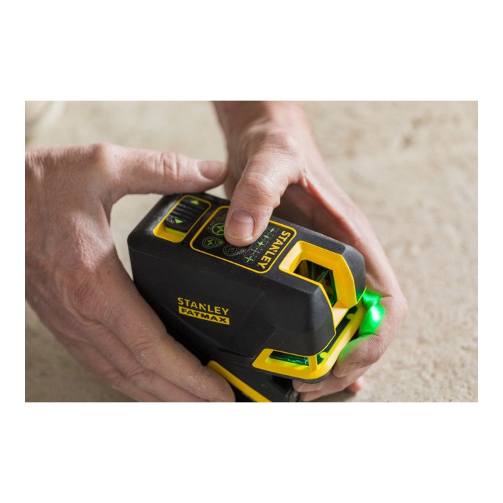 Samopoziomujący laser liniowy i 5-punktowy laser kombinowany z wbudowanym akumulatorem litowo-jonowym i zieloną diodą - Wiązka pionująca w górę i w dół oraz trzy punkty poziome - Możliwość indywidualnego włączania poziomego/pionowego - Tryb impulsowy - Wahadło tłumione magnetycznie - Zabezpieczenie transportowe