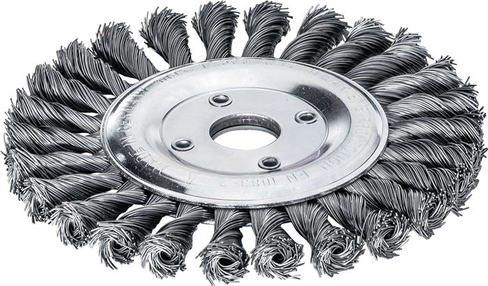 gezopfter Draht · geeignet für grobe Bürstarbeiten wie Schweißnahtreinigung, zur Entfernung von Schlacke, Rost, Zunder, Betonresten, Dichtungsmasse etc. · Bohrung 22,2 mm Ø