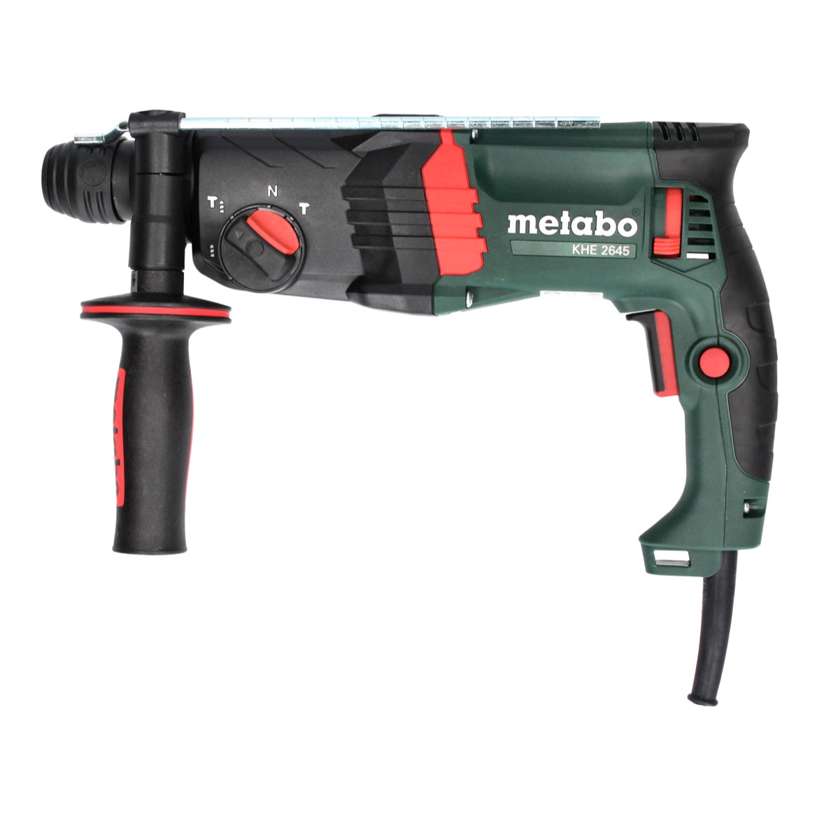 Metabo KHE 2645 to kompaktowy i mocny młot kombi. Silnik o mocy 850 W generuje energię udaru 2,9 dżula. Dzięki uchwytowi SDS-plus dostępna jest szeroka gama akcesoriów. Wiercenie, wiercenie z udarem lub dłutowanie - wszystkie zastosowania są możliwe z KHE 2645. Elektronika Vario (V) kontroluje prędkość roboczą podczas pracy, aby dostosować ją do materiału. Dzięki automatycznemu sprzęgłu bezpieczeństwa S napęd jest mechanicznie odłączany, gdy wiertło jest zablokowane, aby zapobiec kołysaniu się maszyny. Ponadto przełącznik można zablokować w celu wygodnej pracy ciągłej. Kabel sieciowy ma długość 4 metrów, co umożliwia bardzo duży promień roboczy. W zestawie znajduje się również ogranicznik głębokości oraz dodatkowy uchwyt. Metabo to wiodący producent elektronarzędzi. Firma charakteryzuje się długą tradycją i wysokimi standardami jakości.
