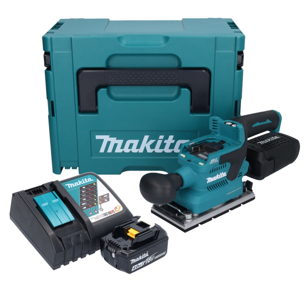 Makita DBO 381 RM1JU Akumulatorowa szlifierka oscylacyjna 18 V 93 x 185 mm bezszczotkowa + 1x akumulator 4,0 Ah + ładowarka + Makpac